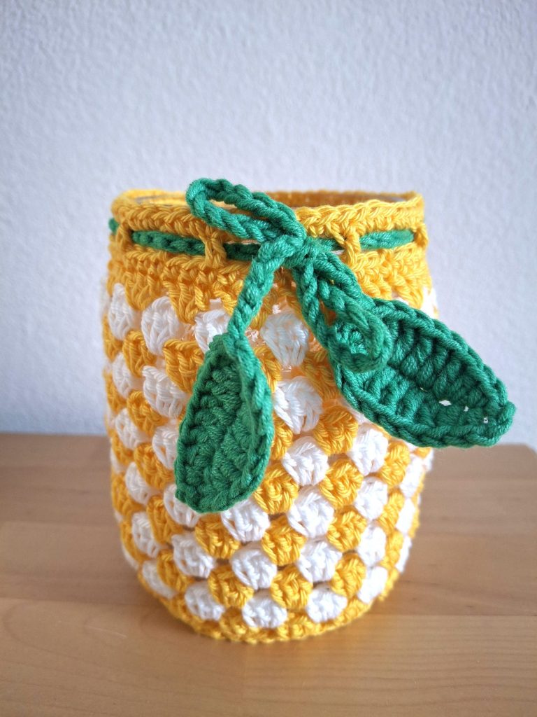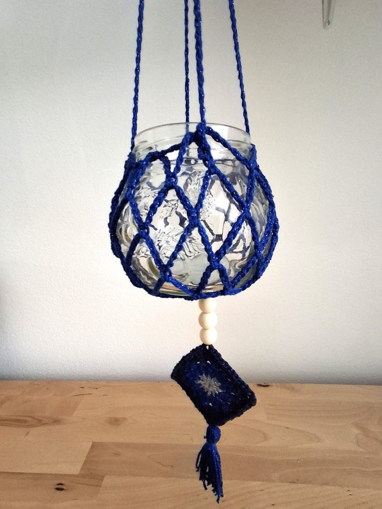 Dieses Windlicht ist mit Granny-Maschen gehäkelt.
